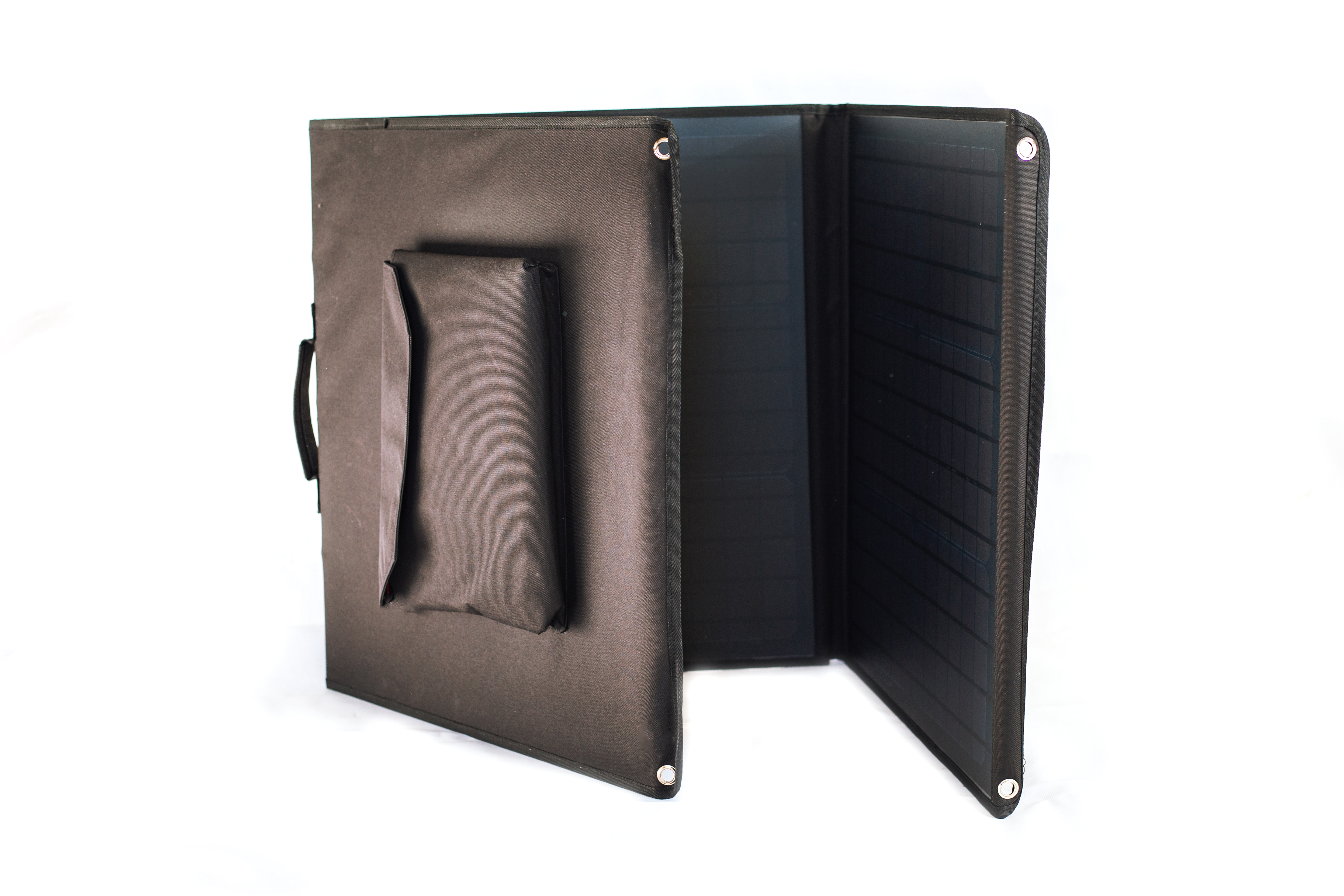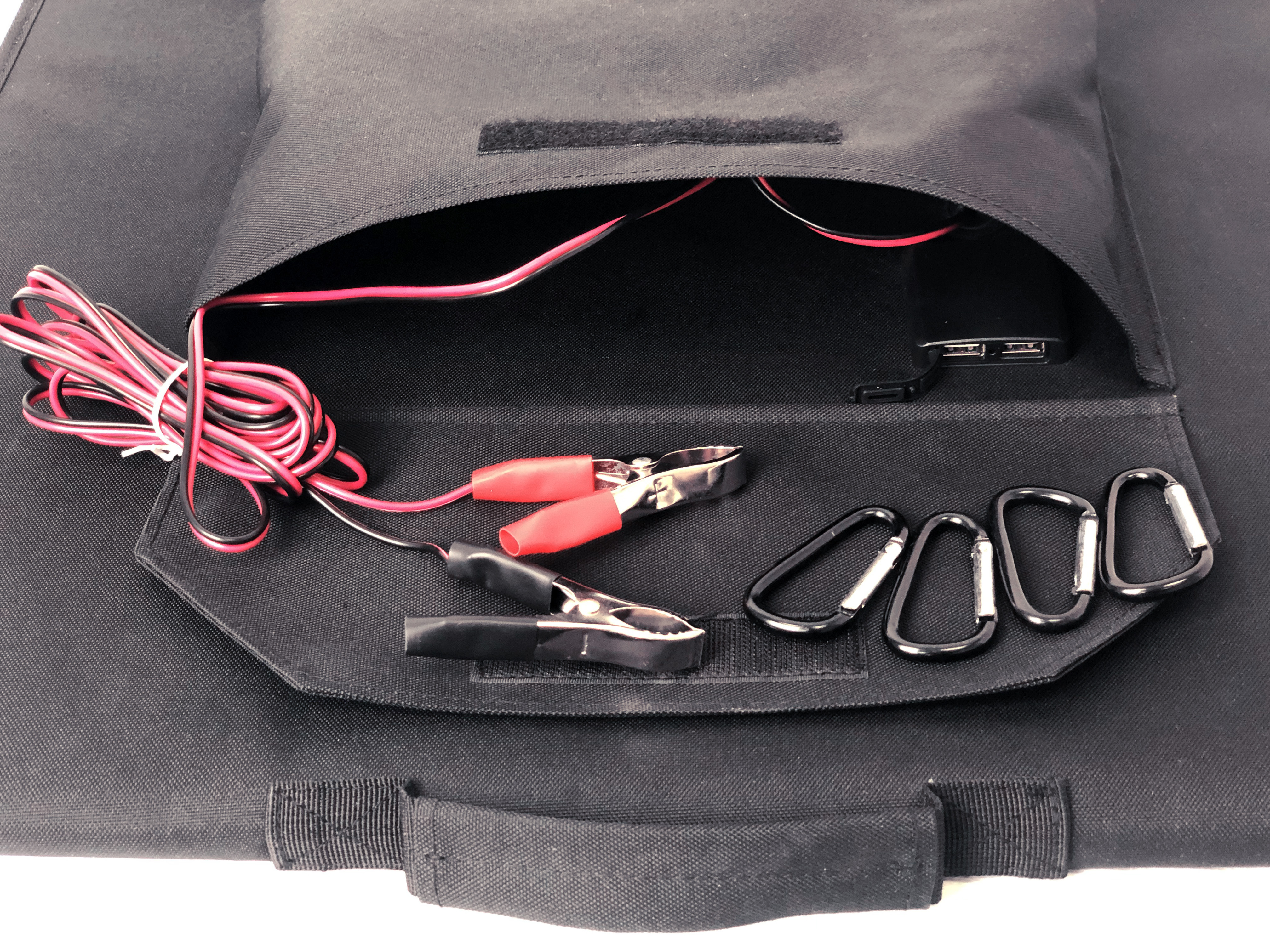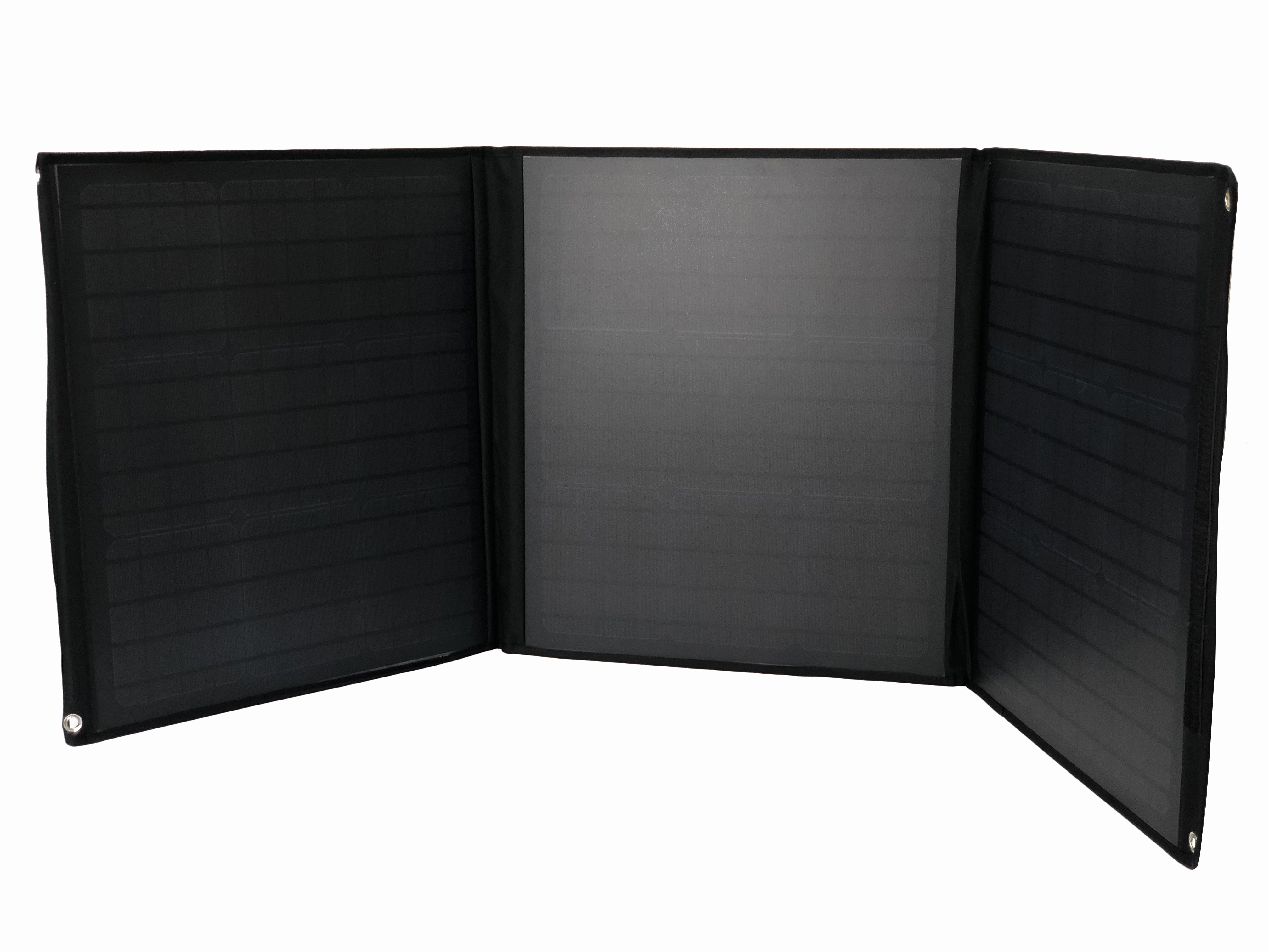 Складная солнечная панель Ice Cube мощностью 100 ватт используется для питания мобильных телефонов, планшетов и других устройств с USB-выходом в походных условиях.