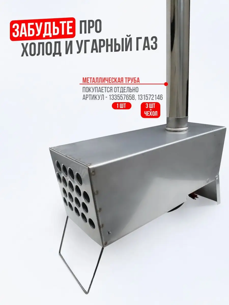 - Предназначен для обогрева рыболовных палаток и небольших помещений без вреда для здоровья, за счёт выхода отработанных газов через герметично соединённые трубы.