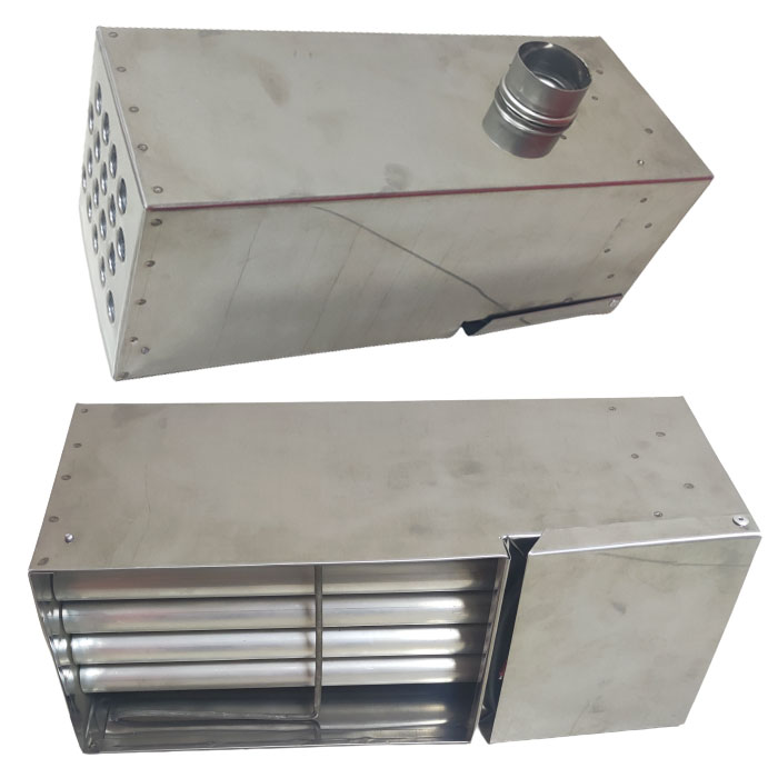 - Корпус Теплообменника изготовлен из нержавеющей стали толщиной 0.5мм, а нагреваемые трубки из алюминия имеющего отличную теплопроводность.