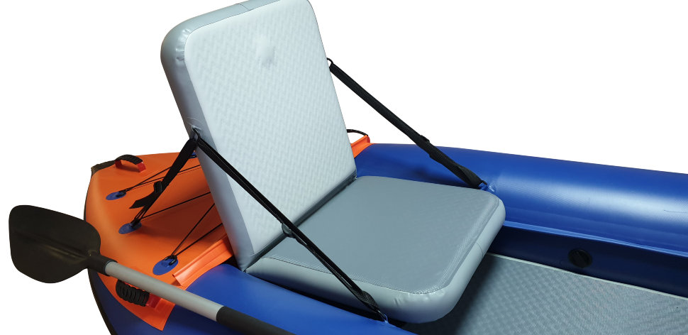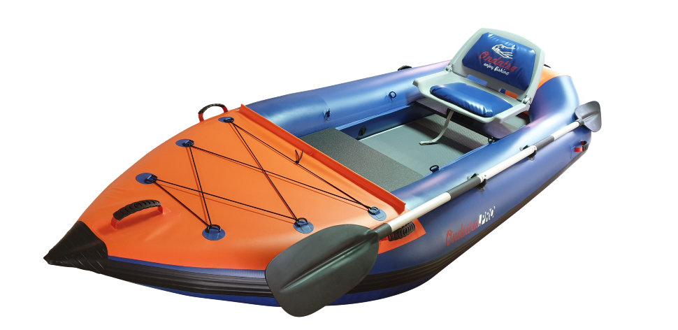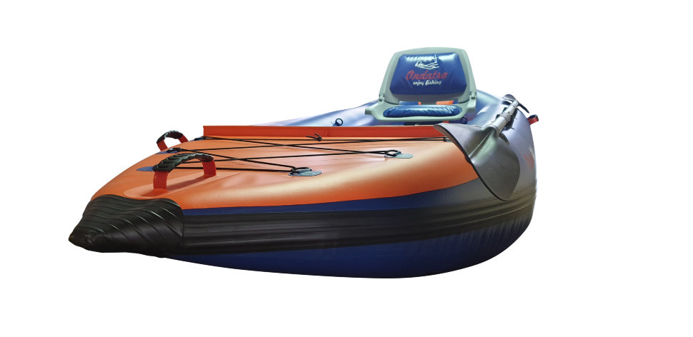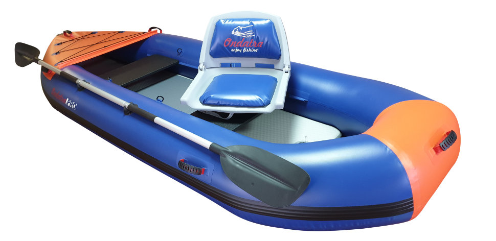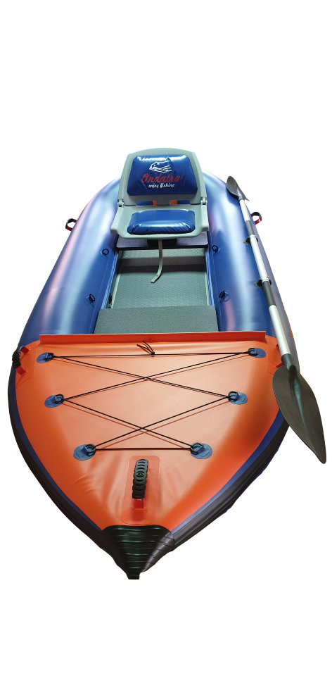 Рыболовный каяк. Идеальный каяк для рыбака с возможностью установки дополнительных опций, расширяющих возможности каяка. Пластиковое поворотное сиденье, жесткий надувной пол из Аэрдека, что позволяет стоять. ПВХ 850гр/м.кв. Вес каяка в полной комплектации, как на фото 21 кг. При использовании мотора необходимо применять гидрокрыло. Дно высокого давления 210 см по ровному полу. Максимальная мощность мотора до 3,5 л/с при использовании гидрокрыла. Имеются дополнительные поперечные перегородки внутри баллонов.