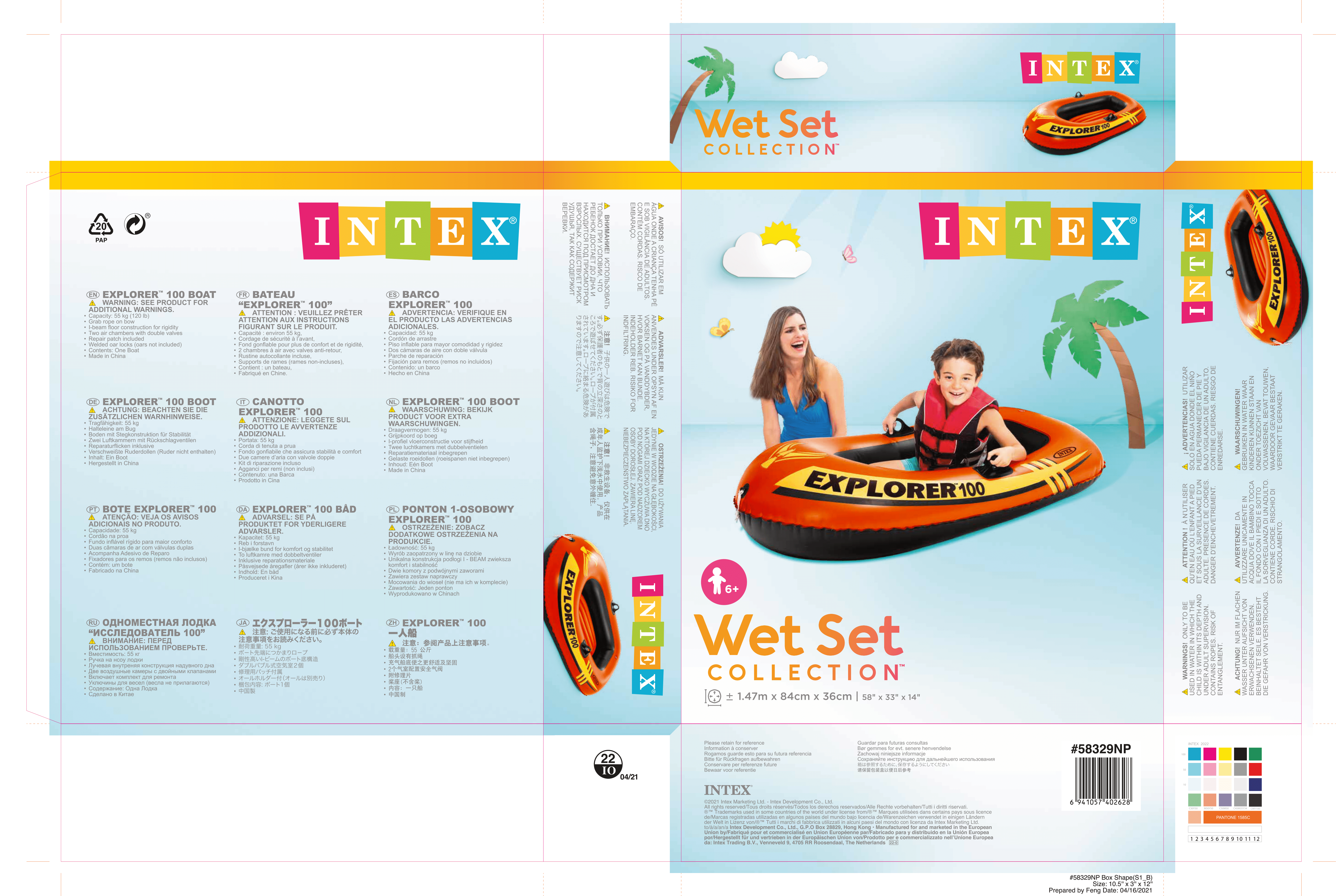 58329 Надувная лодка Intex Explorer 100, одноместная, 147 х 84 х 36 см, от 6 лет, до 55 кг