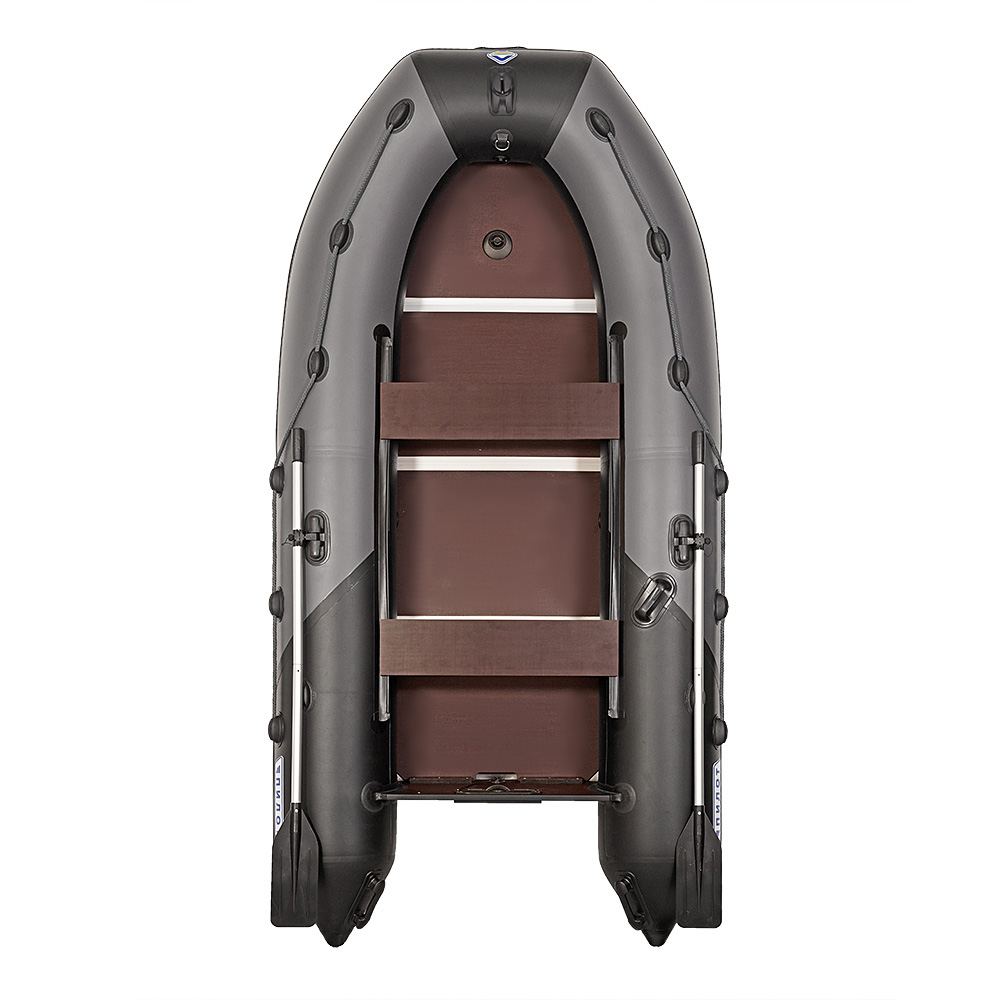 Лучший набор опций для требовательных покупателей обеспечит безопасность и долговечность лодки. Дополнительный комфорт в использовании вам создадут наружная и внутренняя накладка под мотор на жестоком транце, 3 ручки с намоткой для переноски, ручка шкипера, кольцо для фиксации канистры бензина, привальный брус с отбойником, усиление дна ПВХ профилем шириной 60 мм по баллонам и килю , а так же усиление на баллонах под боковой алюминиевый стрингер. На носу лодки установлен якорный рым собственного производства, выполненный из специального более прочного, чем стандартный ABC-пластик.