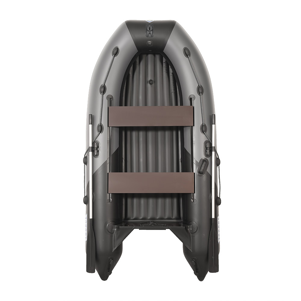 "Рым-утка» - предназначен для быстрого, простого и надёжного крепления якорной веревки в любом положении, и когда якорь на дне, и когда он приподнят. Рекомендуется использовать веревку диаметром от 5 мм. Один из воздушных клапанов расположен на носу лодки, что значительно экономит время сборки-разборки. НДНД из ткани ПВХ плотностью 1100 гр/м2,  придает дополнительную устойчивость, а само дно является теплоизолятором, что удобно при длительном нахождении на воде.