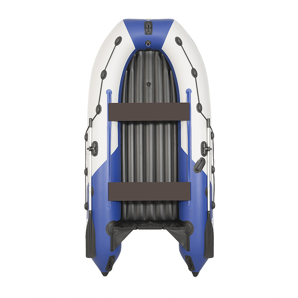 Дополнительный комфорт в использовании вам создадут наружная и внутренняя накладка под мотор на жестоком транце, 3 ручки с намоткой для переноски, ручка шкипера, кольцо для фиксации канистры бензина, привальный брус с отбойником, усиление дна ПВХ профилем шириной 60 мм по баллонам и килю.