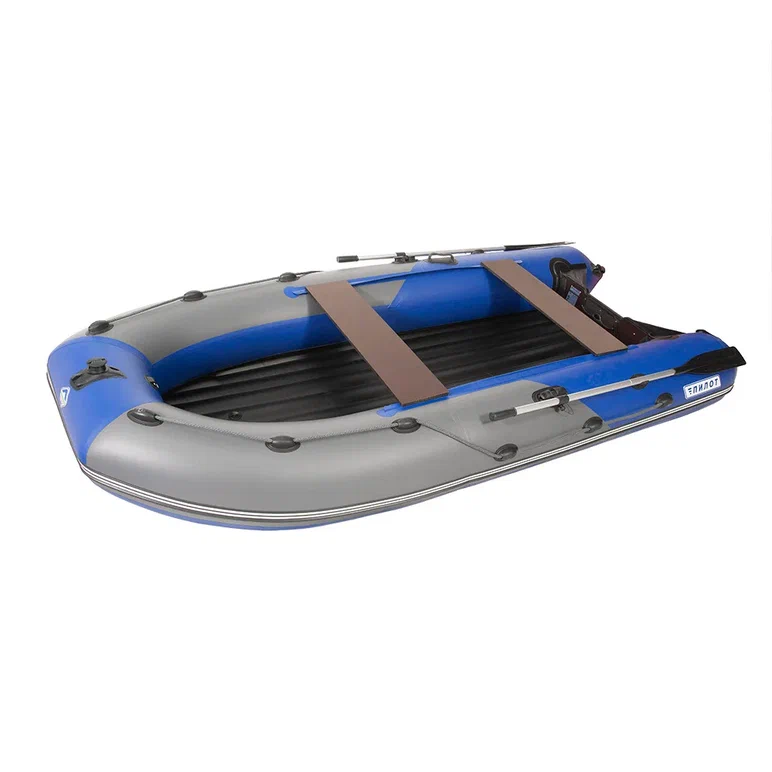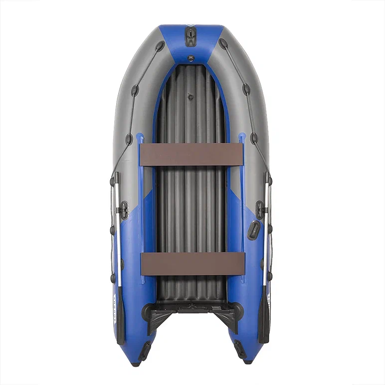 Дополнительный комфорт в использовании вам создадут наружная и внутренняя накладка под мотор на жестоком транце, 3 ручки с намоткой для переноски, ручка шкипера, кольцо для фиксации канистры бензина, привальный брус с отбойником, усиление дна ПВХ профилем шириной 60 мм по баллонам и килю.
