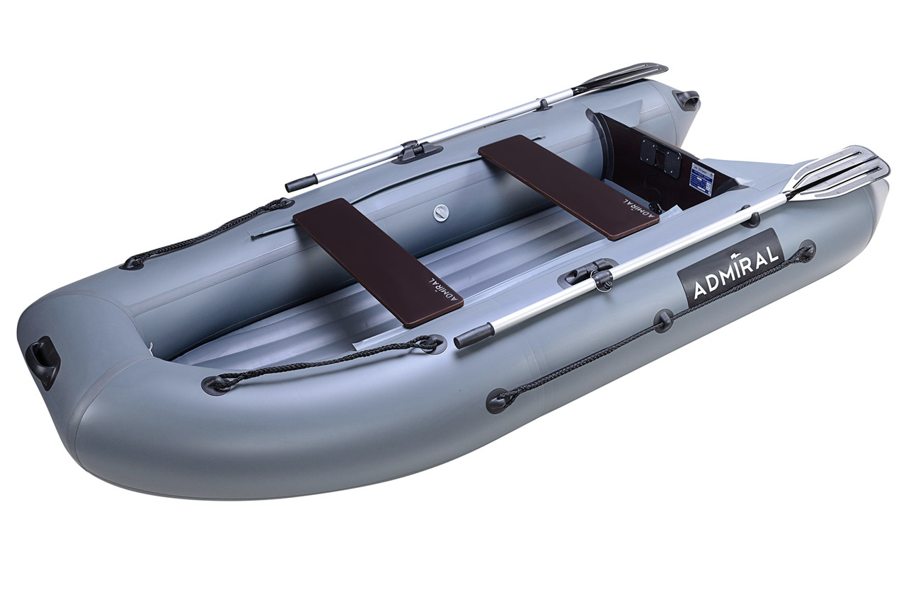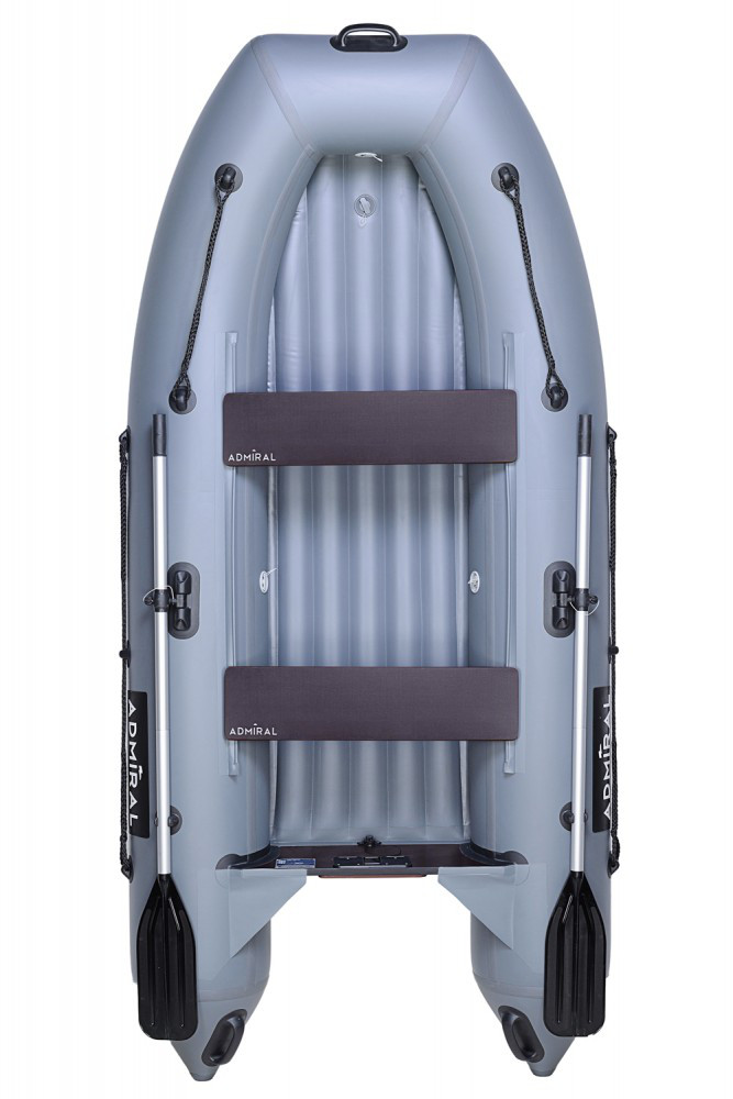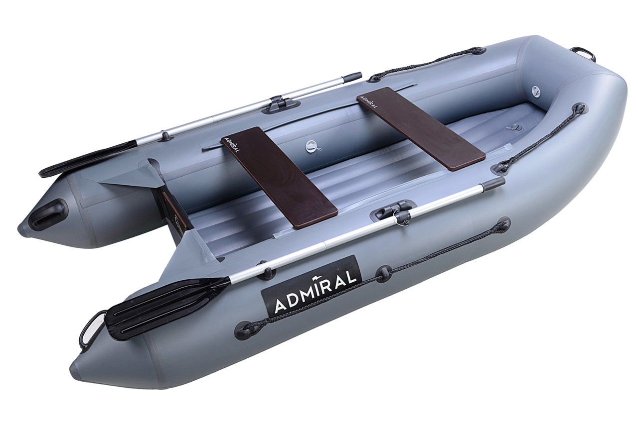 Модель АМ 290 НДНД оборудована надувным дном, не уступающим по жесткости стандартному фанерному пайолу. Его наличие в лодке можно расценивать как преимущество, максимально облегчающее вес комплекта в целом 24 кг (включая весла, сиденья и помпу) легко помещаются в одной сумке.Лодка оснащена вклеенным транцем, усиленным для уменьшения износа, и металлической накладкой. Имеет транспортировочные ручки, бортовой привал, крепление для весел и швартовочные канаты. Она отлично подойдет для рыбалки и отдыха на воде небольшой компанией.Комплектация Адмирал 290 НДНД