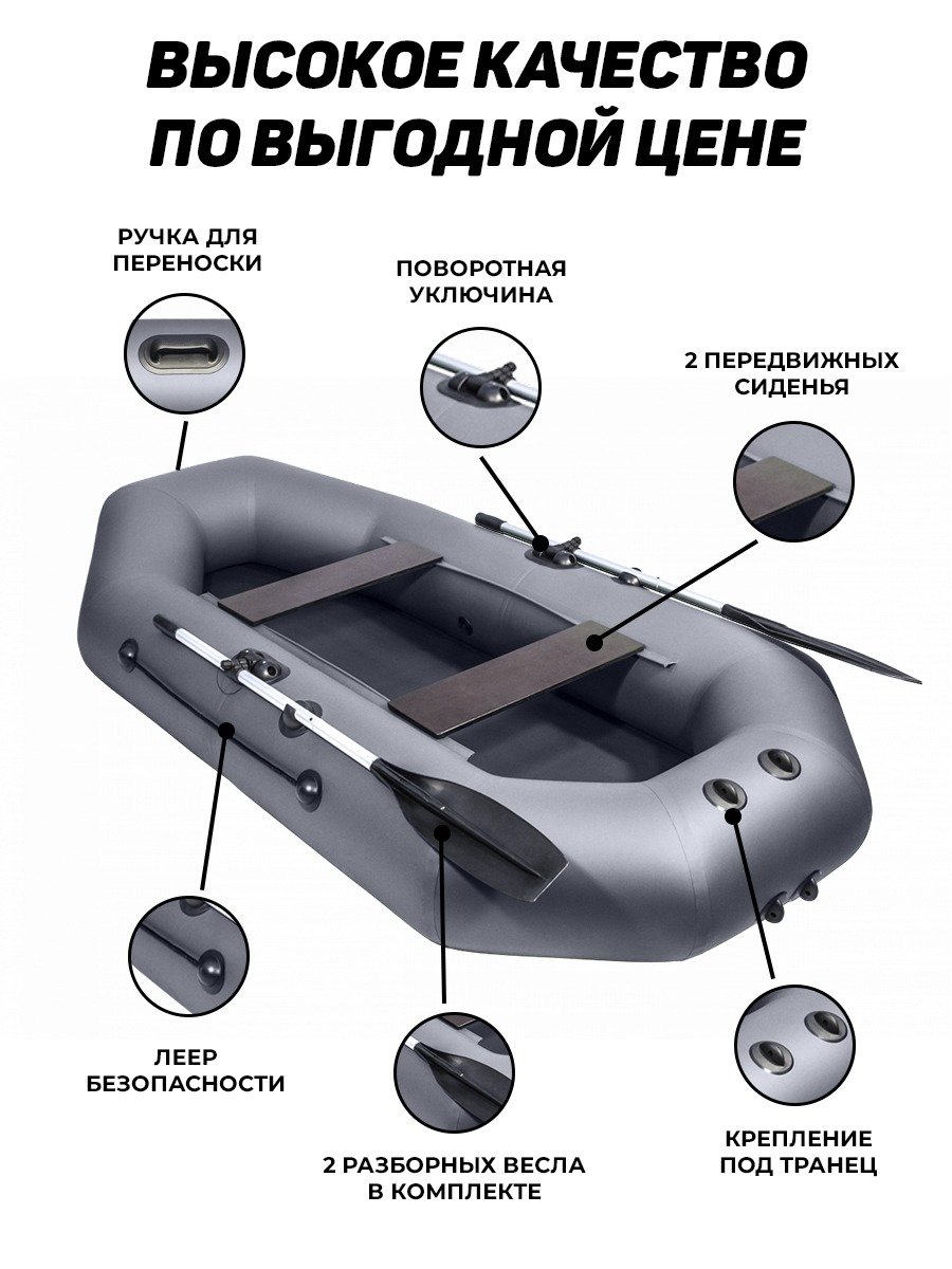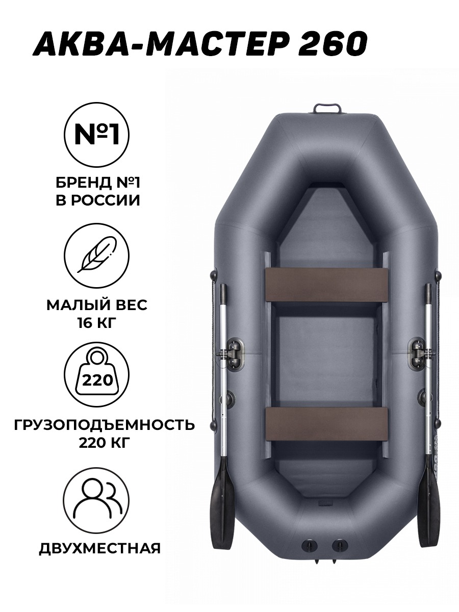 Надувные лодки ПВХ «Аква-Мастер» сделаны из прочного высококачественного ПВХ. Лодки «Аква-Мастер» оборудованы надежными клапанами, которые позволяют как быстро сдуть лодку ПВХ, так и являются надежной защитой от нежелательного стравливания воздуха. Лодки ПВХ «Аква-Мастер» оснащены уключинами для весел поворотного типа, а так же имеют леер безопасности, ручку на носу, надежные фиксаторы для весел, усиленную защиту баллонов под днищем. Данная модель лодки ПВХ «Аква-Мастер» кроме прочего имеет крепление под навесной транец.