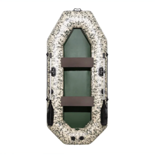 легкое двухместное судно, предназначено для прибрежной рыбалки в закрытых водоемах и может эксплуатироваться в качестве судна для преодоления небольших водных преград при пеших походах, сбора стреляной дичи на утиной охоте. Бортовой баллон, диаметром 36 см имеет два независимых отсека, каждый из которых оснащен воздушным клапаном. Дно лодки приклеено к нижней касательной части борта, перекрывая его, тем самым, защищая от преждевременного истирания ткани баллона. При производстве этой модели используется ПВХ материал плотностью 750 г/кв.м зеленого или серого цвета. Габариты кокпита составляют 208 см по длине и 58 см по ширине.