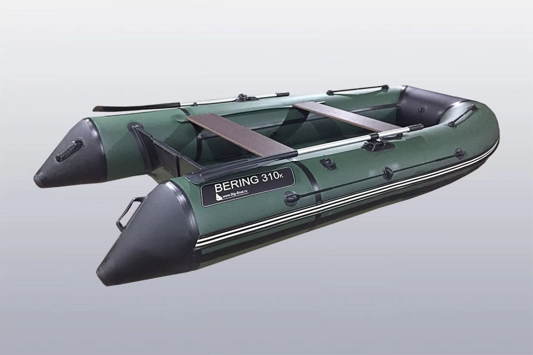 Лодка Bering 310K представляет собой транцевую килевую лодку с габаритами 3100х1550 мм и диаметром бортовых баллонов 460 мм. Эта лодка способна перевозить грузы весом до 450 кг. Лодка состоит из трех независимых надувных отсеков, что позволяет сохранять плавучесть даже при проколе двух из них.