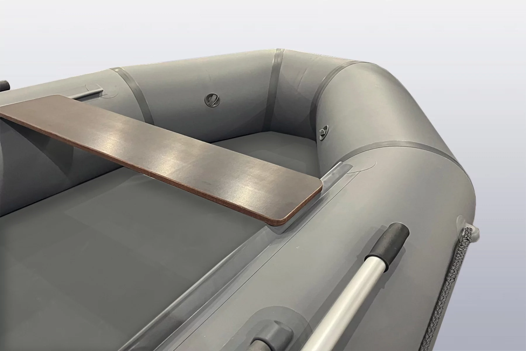 В стандартный комплект входят удобные и практичные лавки, которые можно свободно перемещать вдоль борта лодки, а также весла длиной 1,6 м. По желанию весла можно заменить на разборные длиной 2 м. Для дополнительной жесткости дна этой модели лодки рекомендуется приобрести реечный пол или пол-книжку.