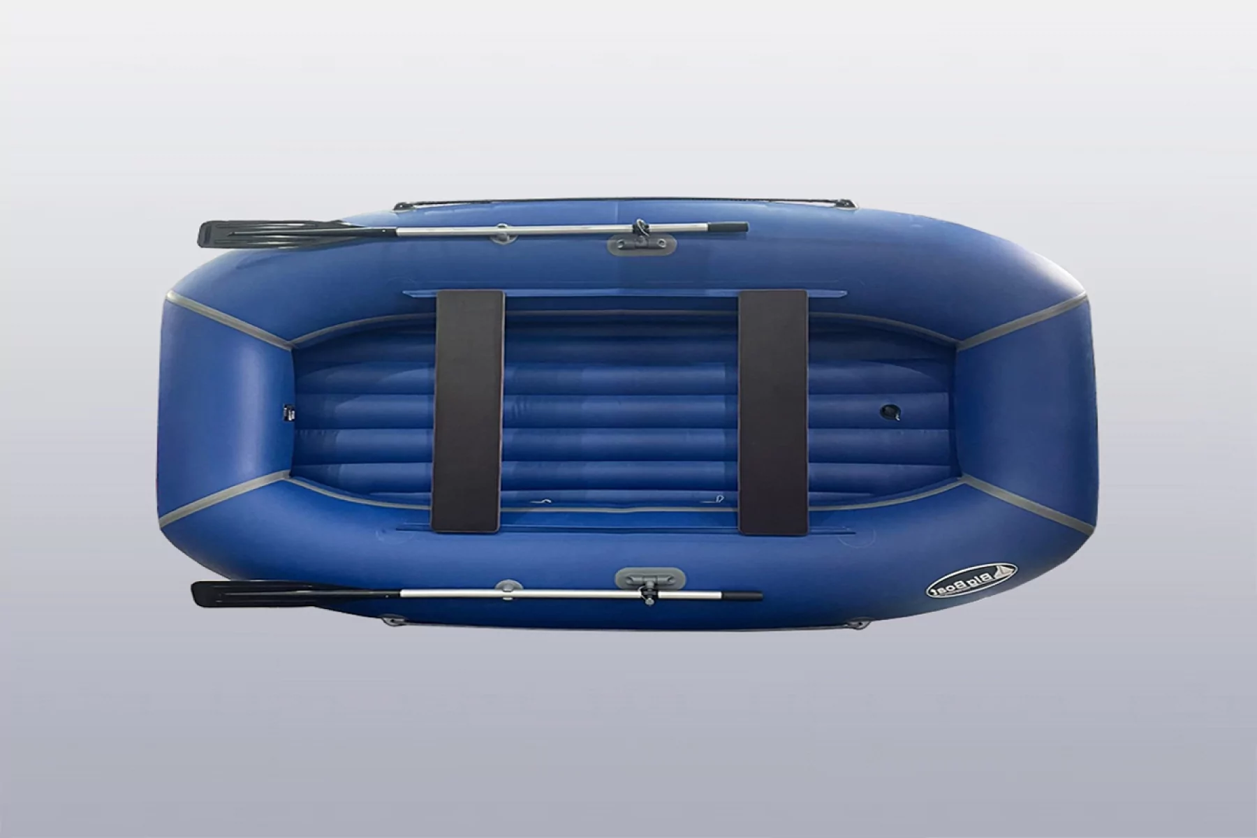 Лодка Яр 260 – это гребная модель с размерами 2650х1850 мм и диаметром баллонов 500 мм, рассчитанная на грузоподъемность до 450 кг. Конструкция включает два независимых надувных отсека, что обеспечивает плавучесть даже при проколе одного из них.