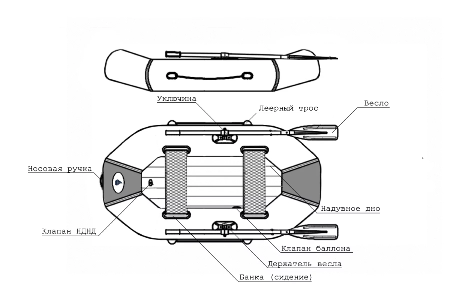 Каждая лодка оснащена практичными лавками, которые можно перемещать вдоль борта. В комплект также входят весла длиной 1,6 м, которые можно заменить на разборные весла длиной 2 м за дополнительную плату. Пайол лодки – надувное дно низкого давления (НДНД), которое можно дополнительно укрепить ЭВА-ковриком.