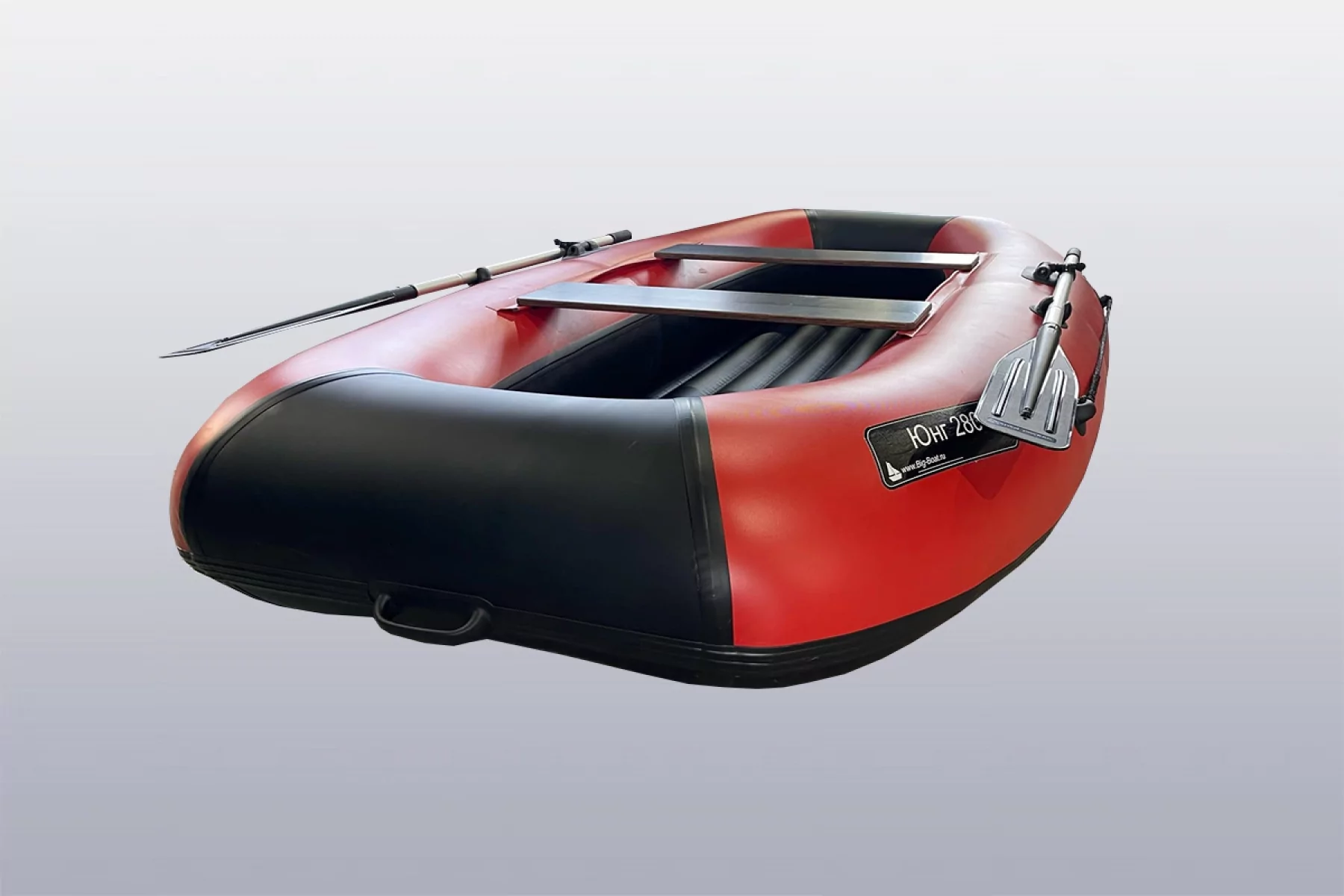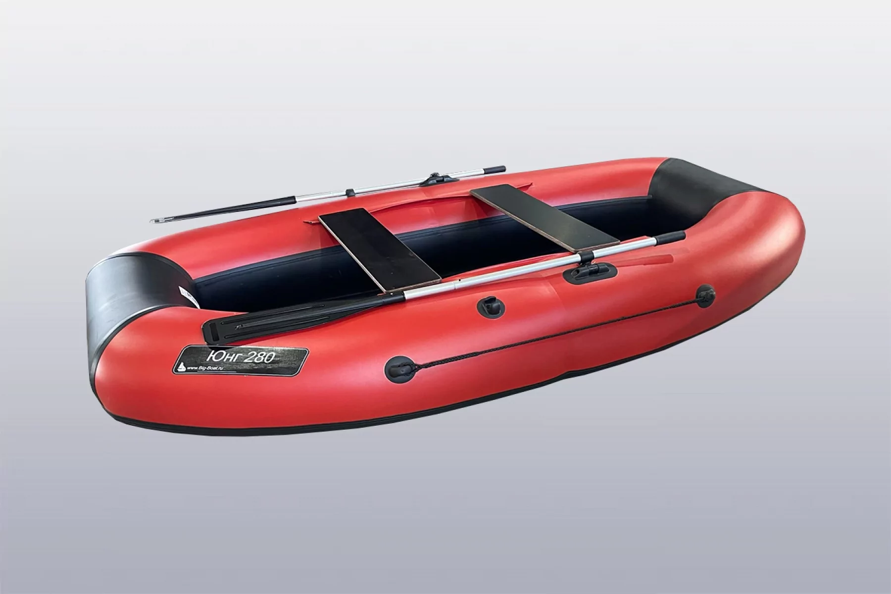 Лодка Юнг 280 – это гребная лодка с размерами 2800х1650 мм и диаметром баллонов 460 мм. Она имеет грузоподъемность до 450 кг. В конструкции предусмотрено 2 независимых надувных отсека, что обеспечивает плавучесть даже при проколе одного из них.