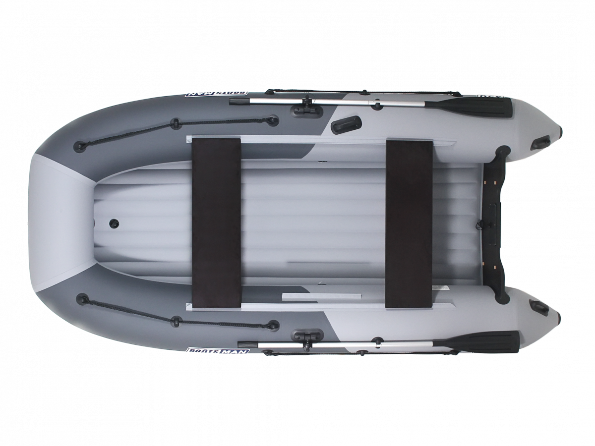 Лодка BoatsMan BT350A с НДНД (надувным дном низкого давления) сочетает в себе легкость транспортировки и комфорт во время эксплуатации. Увеличенный кокпит 257×80×38 см обеспечивает простор для пассажиров и снаряжения, а надувное дно гарантирует плавный ход даже при волнении.