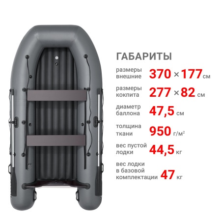 Надувная лодка Фрегат 370 Air (НДНД) Серый