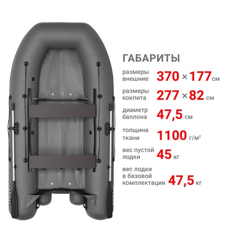 Надувная лодка Фрегат 370 FM Light (ФМ Лайт) Серый