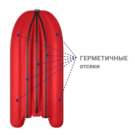 Основные баллоны лодки разделены герметичными перегородками, что обеспечивает непотопляемость лодки и возможность добраться до берега в случае повреждения других отсеков.