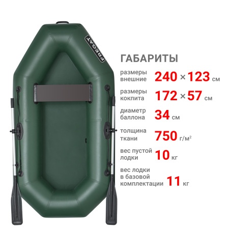 Надувная лодка Фрегат М-11 Оптима Лайт (240 см) Зеленый