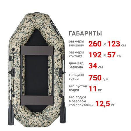 Надувная лодка Фрегат М-2 Оптима (260 см) Камуфляж