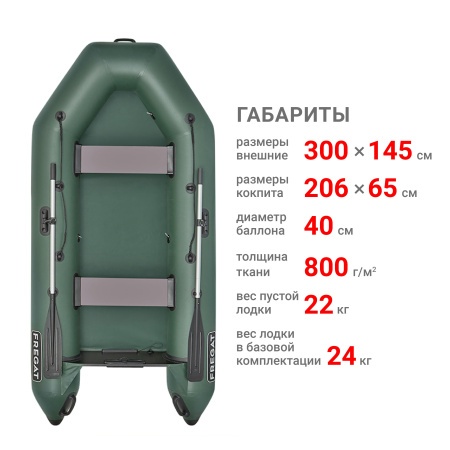 Надувная лодка Фрегат 300Е Лайт зеленый