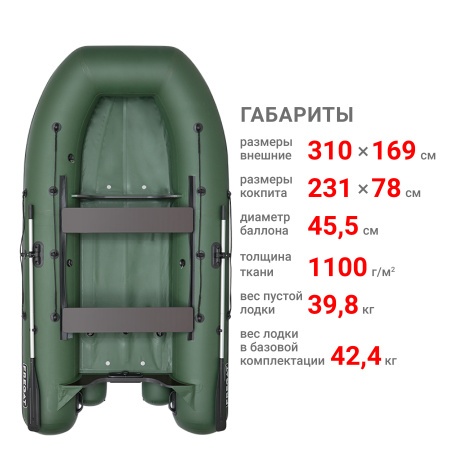 Надувная лодка Фрегат 310 Fm Light (ФМ Лайт) зеленый