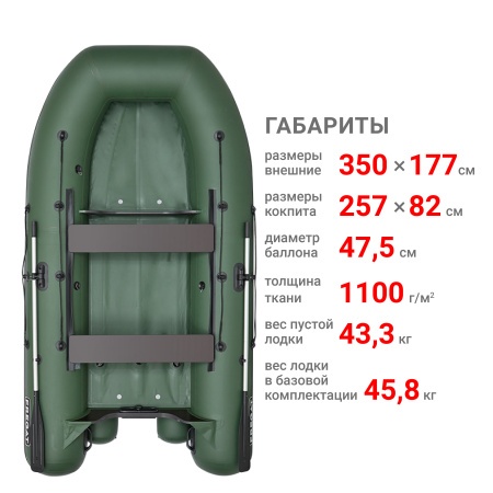 Надувная лодка Фрегат 350 Fm Light (ФМ Лайт) Зеленый