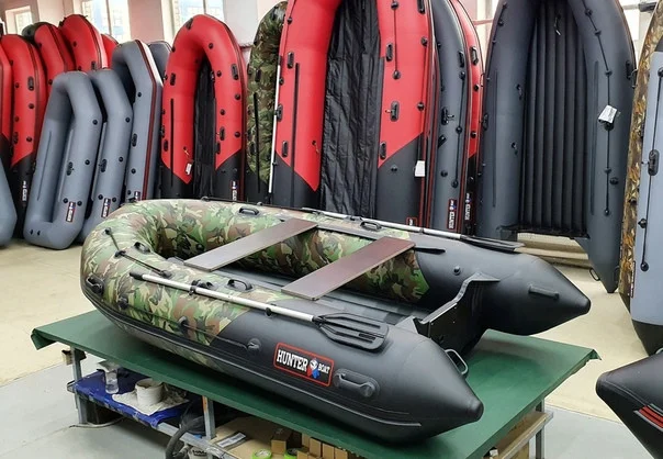 Надувная лодка Хантер 350 ПРО со стационарным вклеенным умеренно-килевым дном низкого давления (НДНД) рассчитана на использование с мотором до 15 л.с. с максимальной загрузкой до 600 кг. Предназначена для рыбалки, охоты и активного отдыха на воде небольшой компанией. Выпускается в двух расцветах - комбинированном красно/черном цвете и комбинированном черно/камуфлированном цвете.