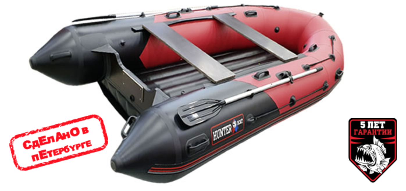 Современный дизайн, комбинированная расцветка корпуса, материал ПВХ плотностью 1050 гр/м.кв ( Хантер 330 ПРО изготовлена из ткани плотностью 950 гр/м.кв ), большой диаметр баллона и объемный кокпит, лишь не полный перечень преимуществ новых надувных лодок. Умеренная цена, отличные ходовые характеристики и пятилетняя гарантия, не оставят без внимания, даже самого взыскательного рыбака.