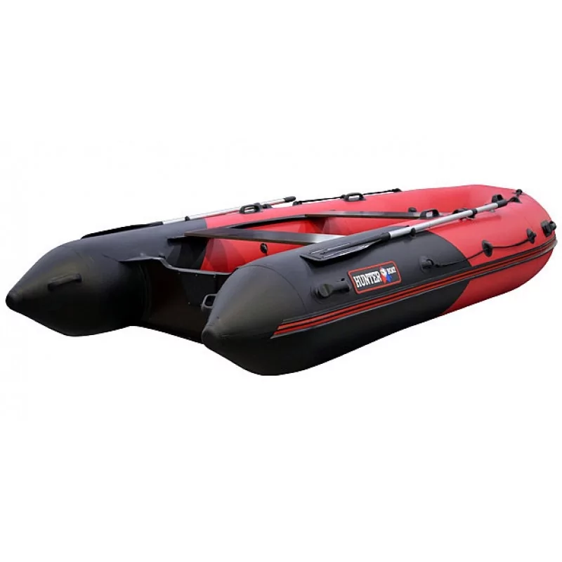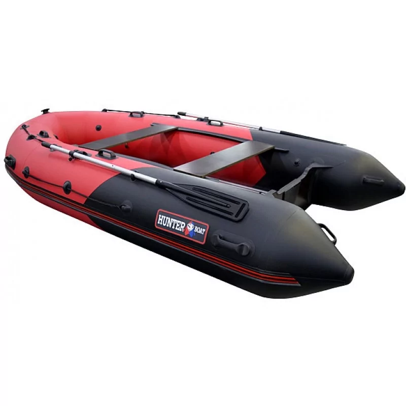 Надувная лодка Хантер 380 с разборным жестким пайольным дном, рассчитана на использование с мотором до 25 л.с. с максимальной загрузкой до 750 кг. Предназначена для рыбалки, охоты и активного отдыха на воде небольшой компанией. Выпускается, пока, только в комбинированном красно/черном цвете.