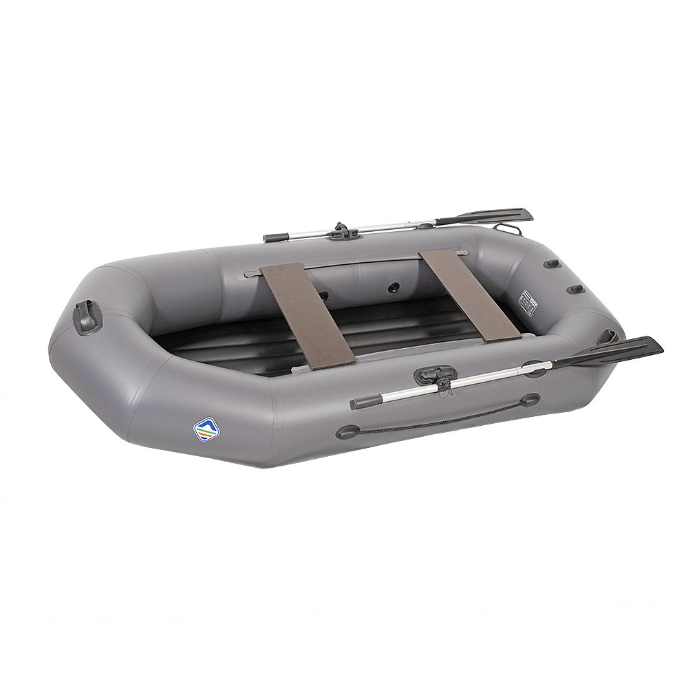Лодка с наибольшей шириной из гребных под мотор такого размера и самым большим баллоном. Комфортно разместятся и пассажиры и вещи. ВНД - надувное дно обладает дополнительной теплоизоляцией и безопасностью т.к является воздушным отсеком. За счет малой осадки лодка легко проходит мелководье, не боится каменистого дна и берегов.