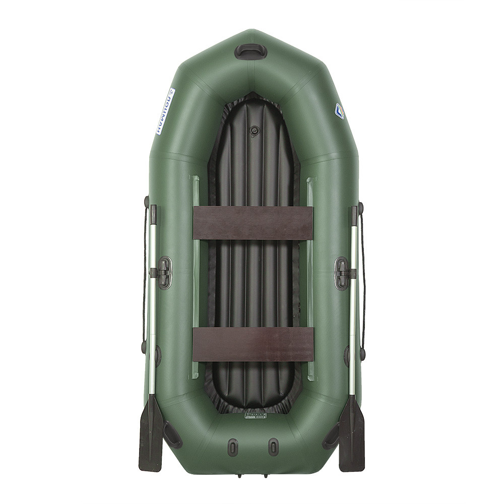 Лодка с наибольшей шириной из гребных под мотор такого размера и самым большим баллоном. Комфортно разместятся и пассажиры и вещи. ВНД - надувное дно обладает дополнительной теплоизоляцией и безопасностью т.к является воздушным отсеком. За счет малой осадки лодка легко проходит мелководье, не боится каменистого дна и берегов.