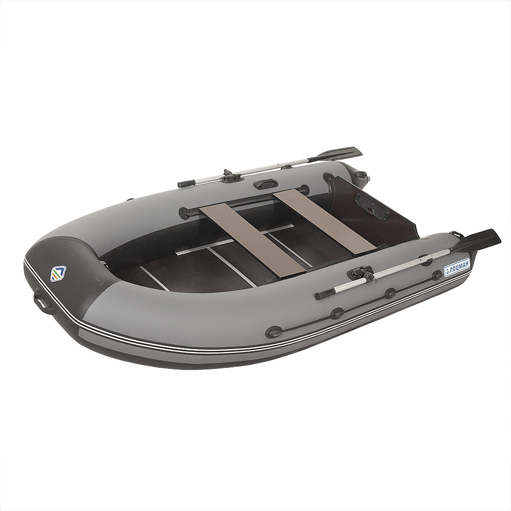 Оптимальный набор опций для килевой лодки под мотор не больше 9,9 л.с. Легкая лодка имеет плавные обводы корпуса, что делает ее управляемой и маневренной. Долговечность в экслпуатации добавит усиление по баллонам и килю ПВХ профилем шириной 60 мм. Лодка уже укомплектована сланью из влагостойкой фанеры толщиной 9 мм. с Н-соединением и боковыми стрингерами. Усиление под стрингер у баллонов.