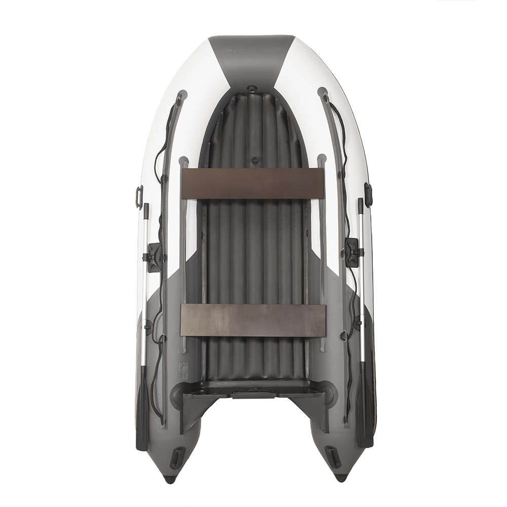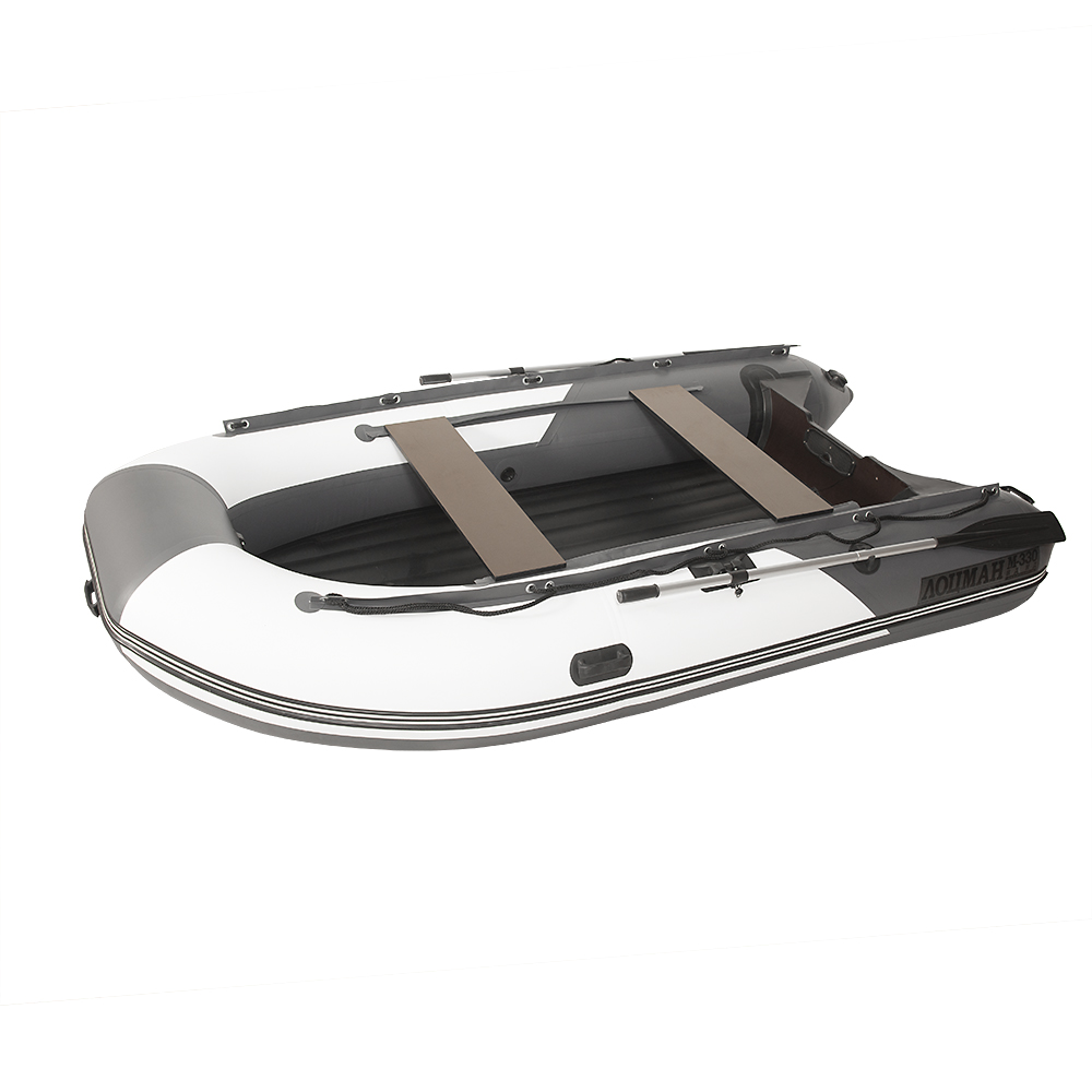 Килевая моторная лодка с НДНД (надувное дно низкого давления) реданного типа. Особенности конструкции реданов, разработанные конструктором завода позволили повысить эксплуатационные свойства и исключить разрыв перегородки. Лодка с таким дном имеет мягкий ход по волне и более высокие скоростные качества по сравнению с лодками с жестким дном. Весят они меньше (от 5 до 11кг) , просто и легко собираются и разбираются, удобны в транспортировке. У них выше устойчивость на волне и грузоподьемность. НД НД является хорошим теплоизолятором, что удобно при длительном нахождении на воде. Днище лодок дополнительно усилено ПВХ профилем шириной 60 мм по баллонам и килю. Упакована в конверт с лямками для переноски. Транспортная упаковка -картонный короб.