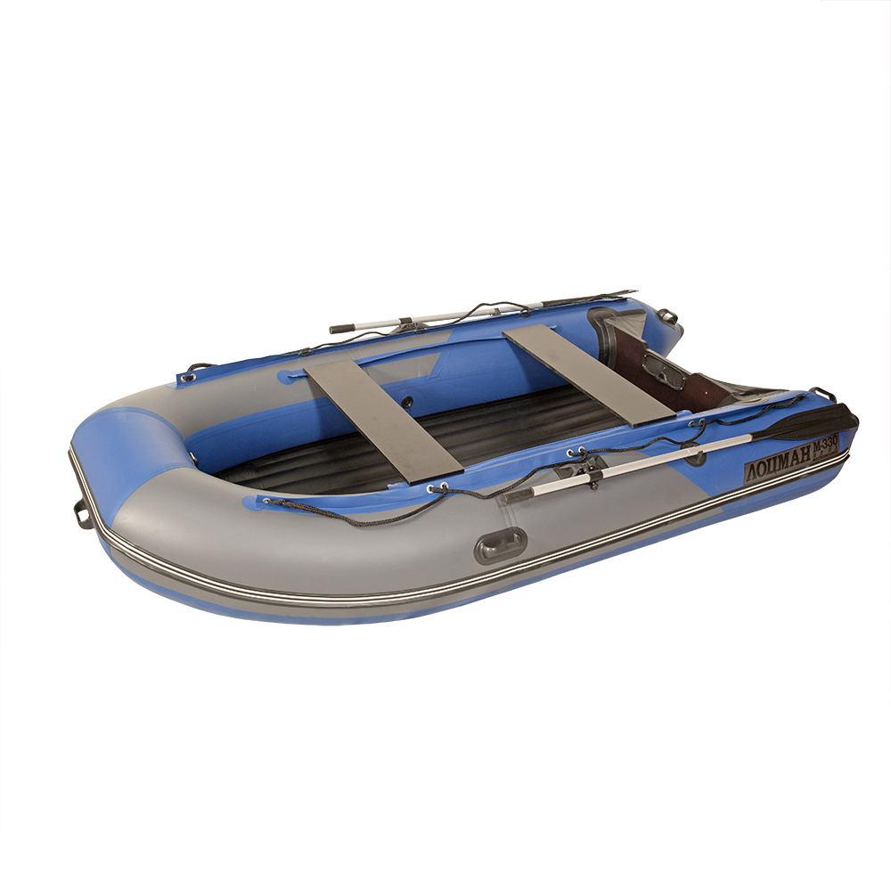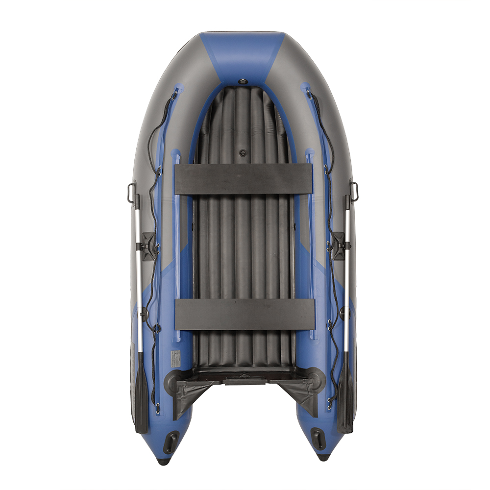 Килевая моторная лодка с НДНД (надувное дно низкого давления) реданного типа. Особенности конструкции реданов, разработанные конструктором завода позволили повысить эксплуатационные свойства и исключить разрыв перегородки. Лодка с таким дном имеет мягкий ход по волне и более высокие скоростные качества по сравнению с лодками с жестким дном. Весят они меньше (от 5 до 11кг) , просто и легко собираются и разбираются, удобны в транспортировке. У них выше устойчивость на волне и грузоподьемность. НД НД является хорошим теплоизолятором, что удобно при длительном нахождении на воде. Днище лодок дополнительно усилено ПВХ профилем шириной 60 мм по баллонам и килю. Упакована в конверт с лямками для переноски. Транспортная упаковка -картонный короб.