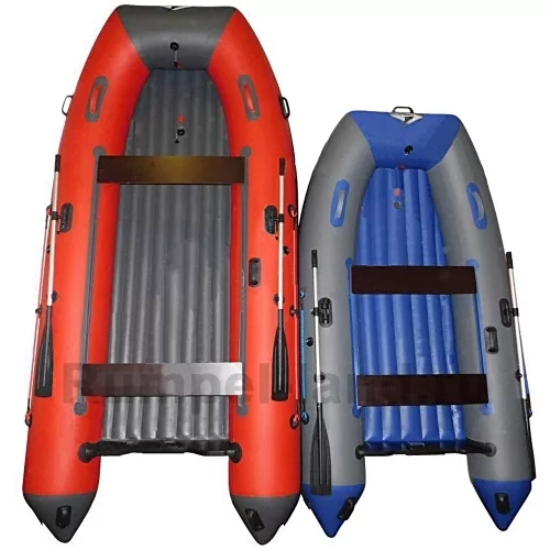 - Изготовлена из высокопрочной пятислойной ткани ПВХ южнокорейского производства с плотностью 850 г/м² для баллонов и 1000 г/м² для днища.