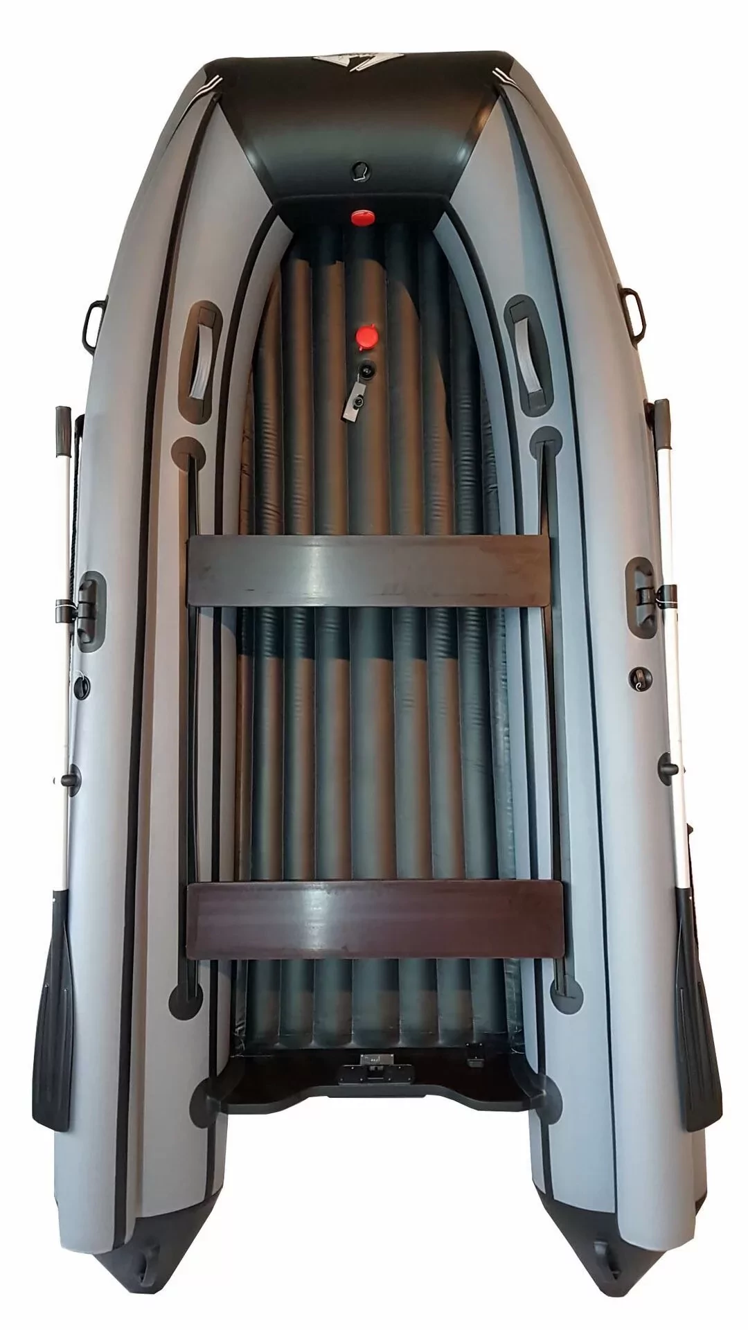 - Надувное дно низкого давления (НДНД) обеспечивает прочность и устойчивость на воде, а форобортовые конструкции добавляют дополнительную жесткость.