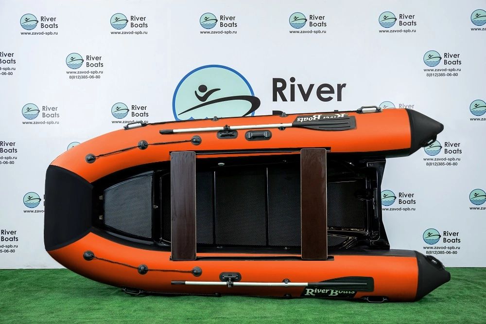Надувная лодка РИБ RiverBoats RB 380 Встроенный рундук (черно-оранжевый)