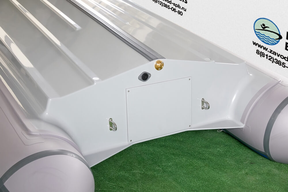Утка носовая и потопчины с рым-ручкой, не входят в штатную комплектацию! Кнопки для мягкой накладки на носовом рундуке так же доп. опция, при заказе мягкой накладки. Так же Вы можете заказать лодку без установки ручек водителя, уключины и держателей весла перенести на носовой рундук, как на фотографии, для установки рулевой консоли.