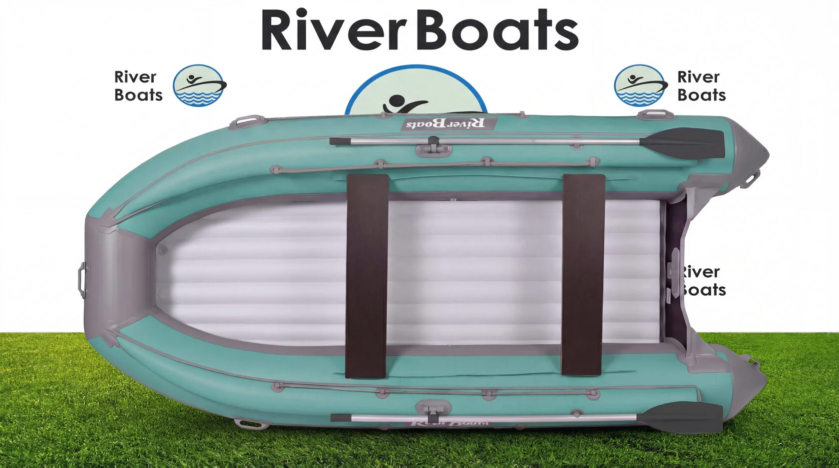 - Удобство. Характерный для всех лодок RiverBoats леерный трос проходит по верхней поверхности носа лодки и по боковой поверхности бортов. Передвижные сиденья фиксируются к баллонам креплениями ликтрос-ликпаз и могут перемещаться в удобное для Вас положение. На носу установлена ручка для переноски. Дополнительные ручки для переноски имеются на концевиках баллонов, ручка водителя — посередине баллона справа и слева.