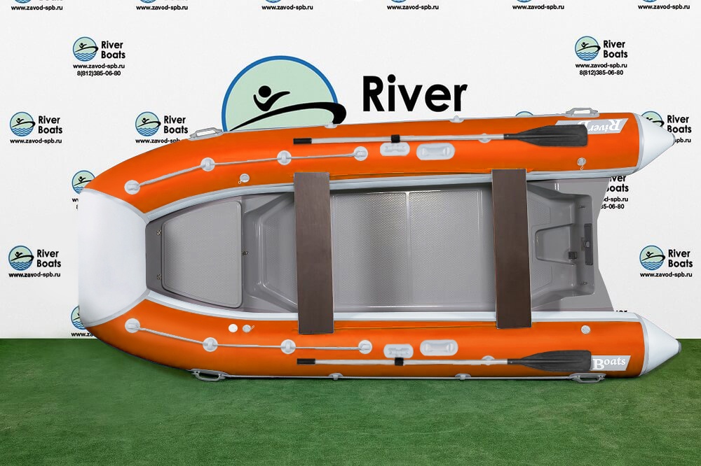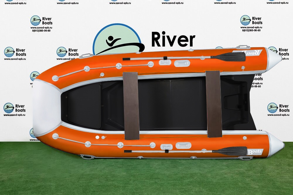 Надувная лодка RiverBoats RB  380 Встроенный рундук (NEW), Цвет: бело-оранжевый, фото