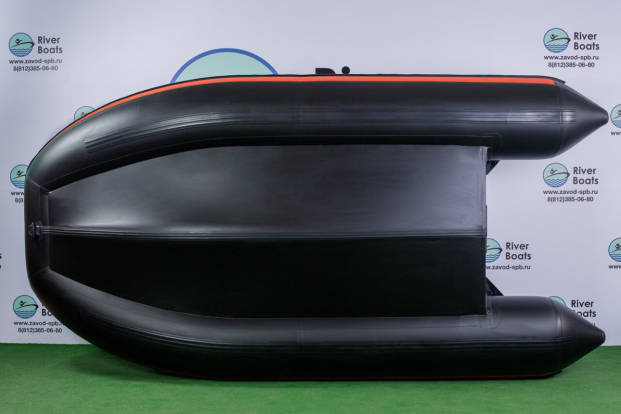 RiverBoats RB-390 - это надувная моторно-килевая ПВХ лодка с повышенной мореходностью, оснащенная жестким фанерным пайолом, рассчитанная на 7-х человек и использование подвесного лодочного мотора мощностью до 30 л.с.