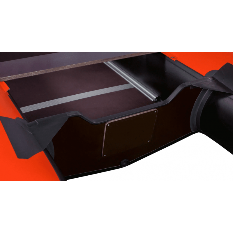 Моторно-килевые лодки RiverBoats RB-390 комплектуются пайолом, изготовленным из влагостойкой фанеры толщиной 12 мм с антискользящим покрытием и продольными алюминиевыми стрингерами, обеспечивающими жесткость пола.