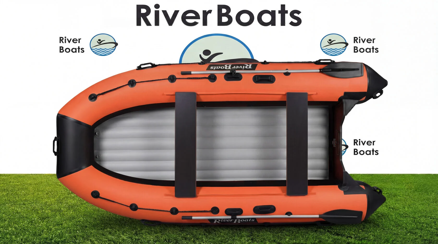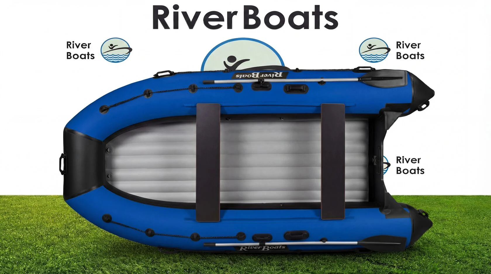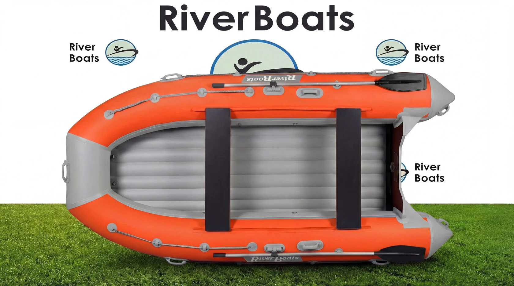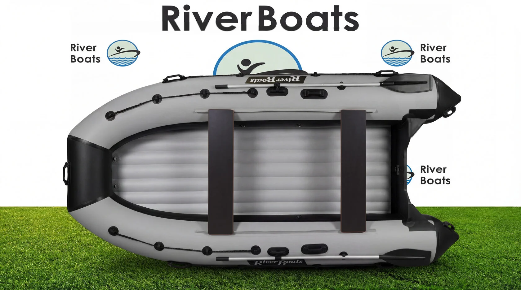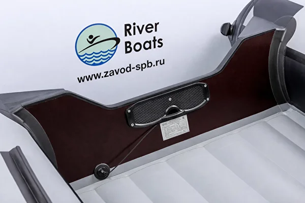- Удобство. Характерный для всех лодок RiverBoats леерный трос проходит по верхней поверхности носа лодки и по боковой поверхности бортов. Передвижные сиденья фиксируются к баллонам креплениями ликтрос-ликпаз и могут перемещаться в удобное для Вас положение. На носу установлена ручка для переноски. Дополнительные ручки для переноски имеются на концевиках баллонов, ручка водителя — посередине баллона справа и слева.