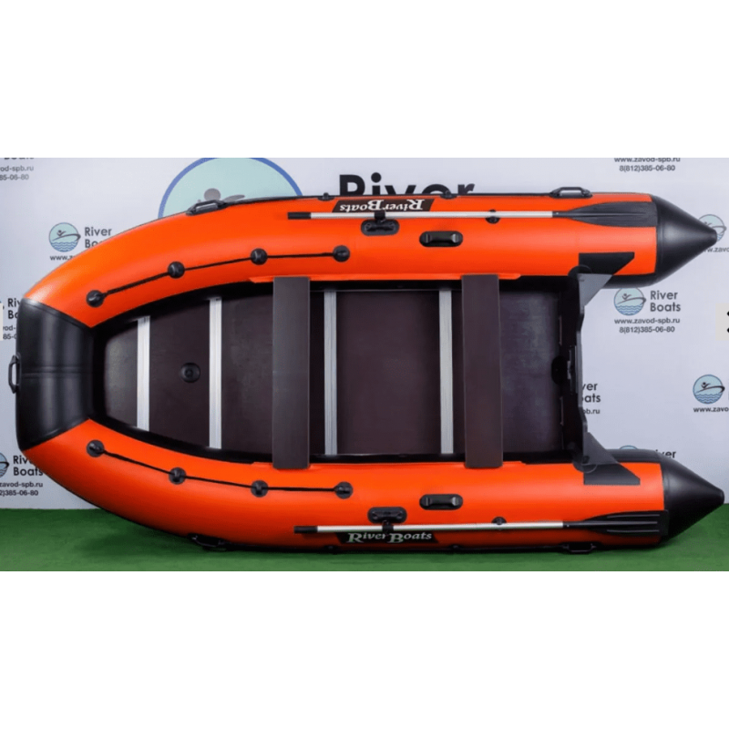 RiverBoats RB-390 - это надувная моторно-килевая ПВХ лодка с повышенной мореходностью, оснащенная жестким фанерным пайолом, рассчитанная на 7-х человек и использование подвесного лодочного мотора мощностью до 30 л.с.