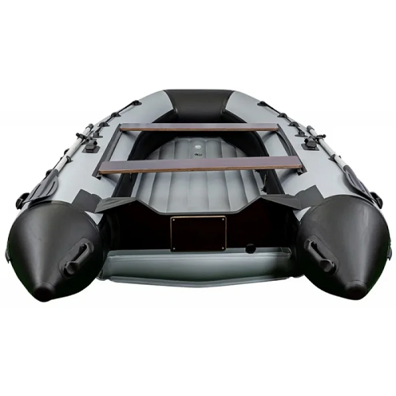 RiverBoats RB 430 НДНД – прочная и вместительная лодка из поливинилхлорида, созданная для рыбной ловли, охоты и туристических походов по водоемам. Благодаря габаритам 430 см в длину и 196 см в ширину, а также баллонам диаметром 53 см, она демонстрирует отличную устойчивость и удобство при эксплуатации. Модель способна перевозить до восьми пассажиров и выдерживает нагрузку до 1050 кг. Конструкция включает жесткий транец, надувное дно с низким давлением и регулируемые сиденья. Совместима с подвесными моторами мощностью до 30 л.с.