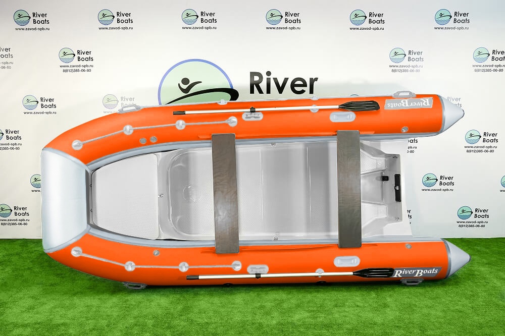 Надувная лодка RiverBoats RB 430 (Встроенный рундук) (транец L — 515 мм.), Цвет: бело-оранжевый, фото