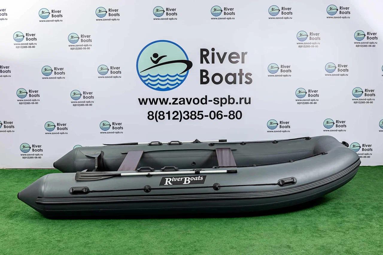 RiverBoats RB-490 - это надувная моторно-килевая ПВХ лодка с повышенной мореходностью, оснащенная жестким фанерным пайолом, рассчитанная на 9-х человек и использование подвесного лодочного мотора мощностью до 50 л.с.