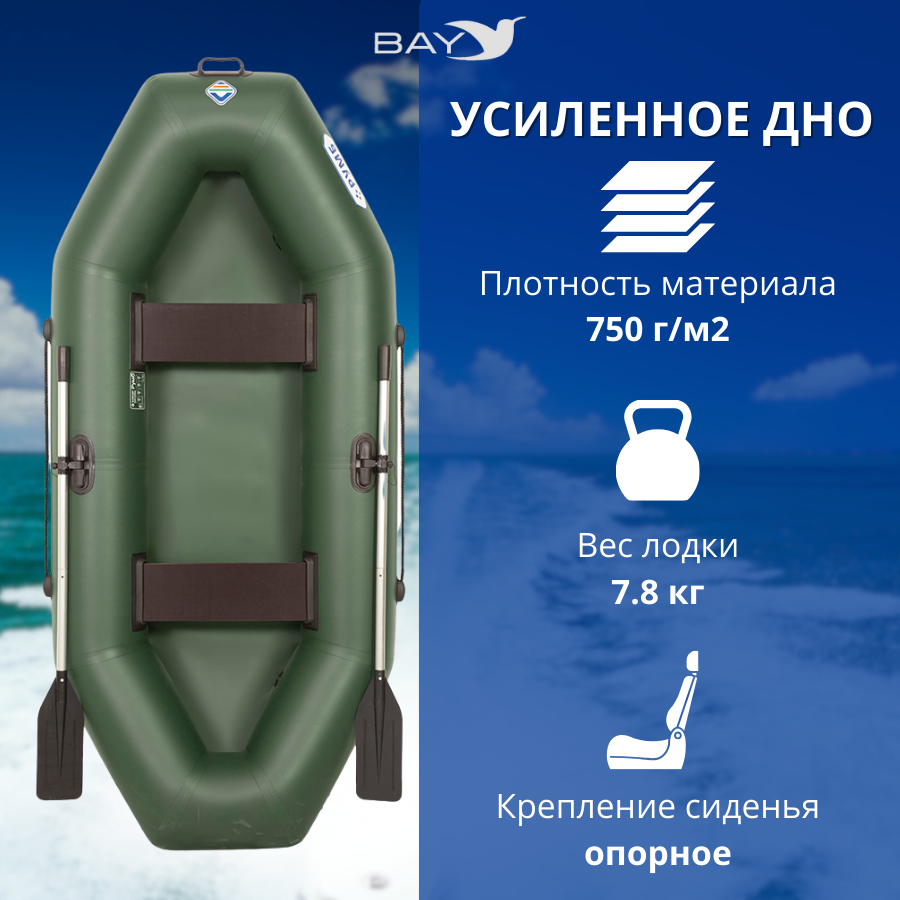 Особенности линейки: опорное крепление банок, ручка для переноски на носу, 4 точки крепления леерного пояса, без фиксаторов весла. Лодка упакована в чехол-мешок из ткани оксфорд с PU накаткой.