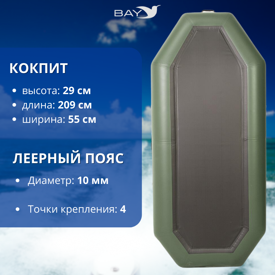 Особенности линейки: опорное крепление банок, ручка для переноски на носу, 4 точки крепления леерного пояса, без фиксаторов весла. Упакована в чехол-мешок из ткани оксфорд с PU накаткой. Жесткая слань в комплекте.