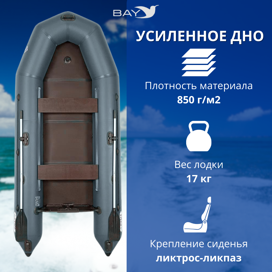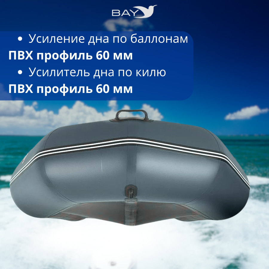 - Прочность и надежность: Лодка изготовлена из армированного ПВХ плотностью 850 г/м², что обеспечивает ей высокую устойчивость к механическим повреждениям и долговечность.